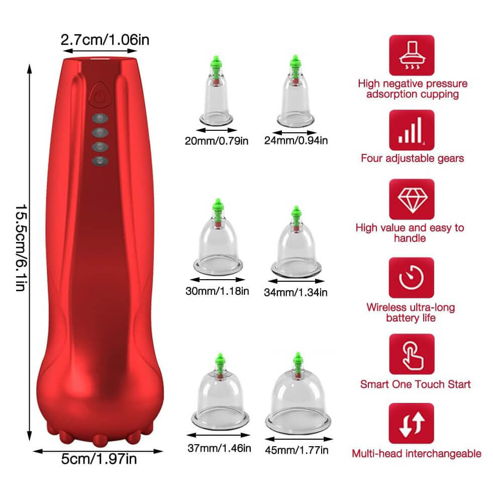 • 6 Μεγέθη Βεντουζών: Κατάλληλα για διαφορετικά σημεία του σώματος.