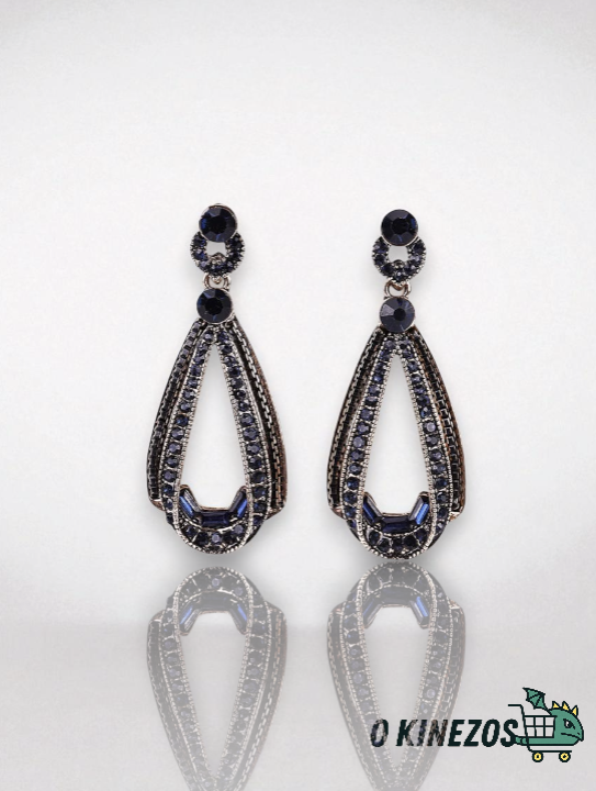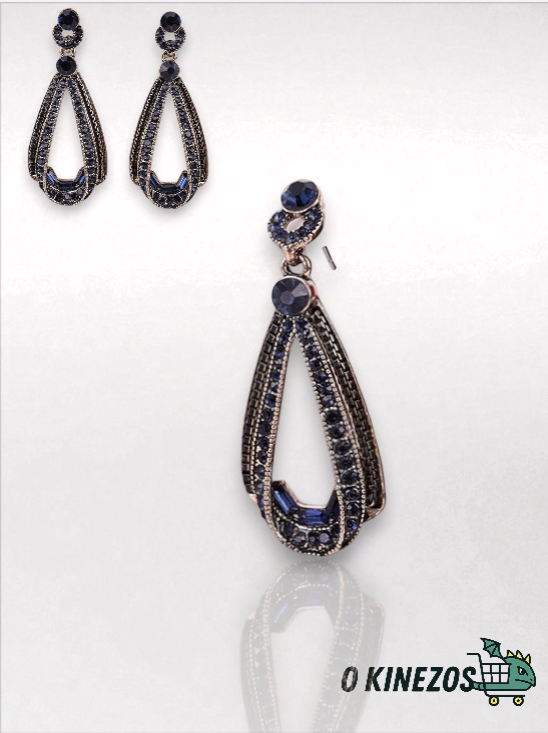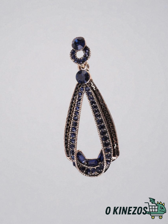 Προσθέστε λάμψη και χρώμα στην εμφάνισή σας με αυτά τα κομψά κρεμαστά σκουλαρίκια, διακοσμημένα με μπλε στρας υψηλής ποιότητας.