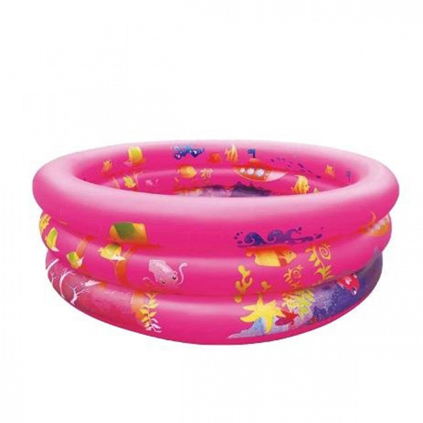 Χαρίστε στα παιδιά σας ατελείωτες ώρες παιχνιδιού και δροσιάς με αυτή την υπέροχη φουσκωτή παιδική πισίνα σε ροζ χρώμα! Με διάμετρο 130cm και βάθος 38cm, είναι ιδανική για μικρά παιδιά προσφέροντας άνεση και ασφάλεια στο νερό.