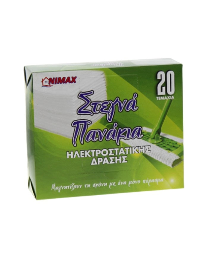 Συσκευασία με 20 πανάκια ξεσκονίσματος συμβατά με σκούπες.